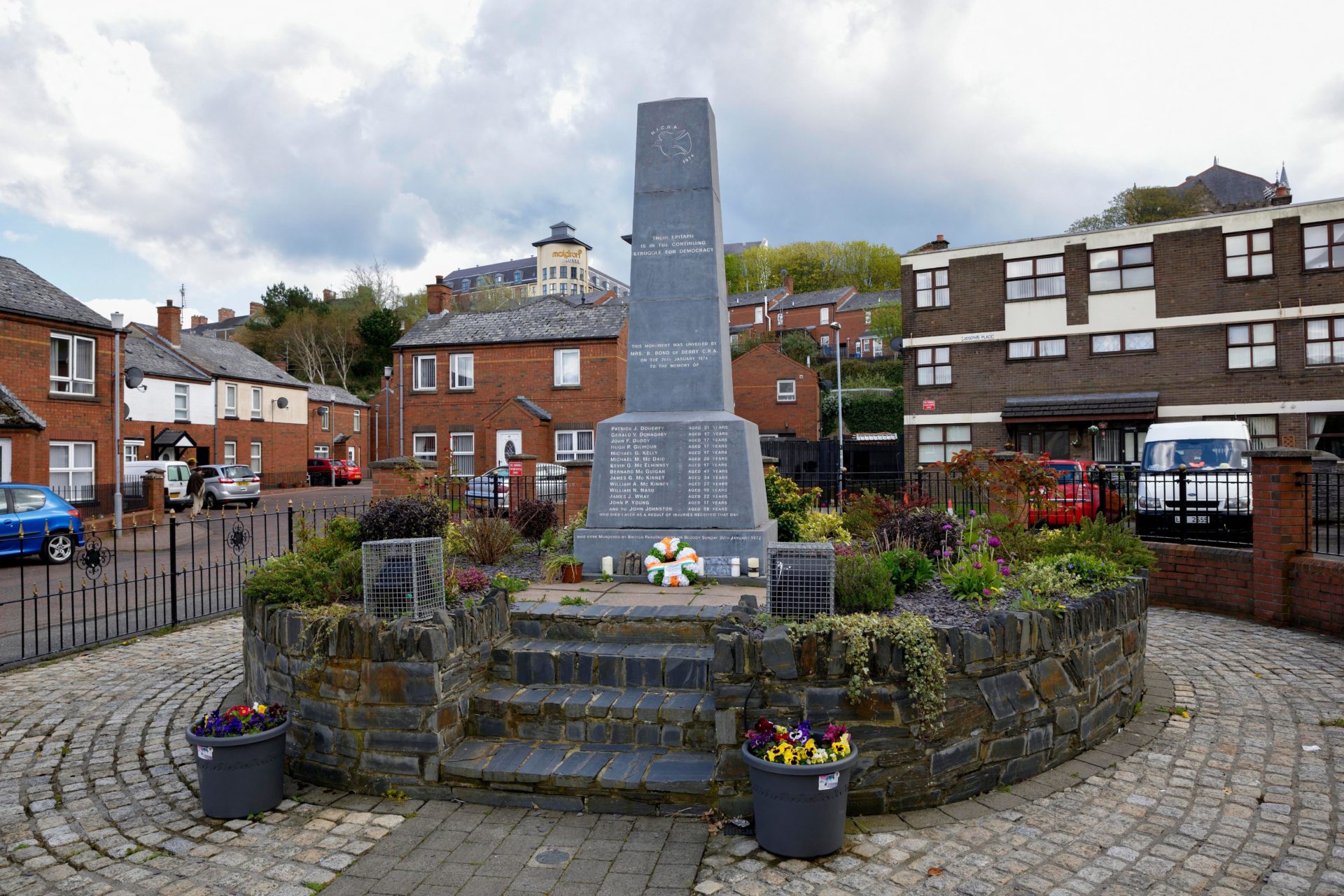 It is these men and women the crowd have come to remember. The tannoy system bursts into life; prayers are recited en masse and sermons are delivered by local clergymen. Ami Nash, the nephew of murdered teenager William Nash, reads out the list of the murdered and wounded, while a tin whistle plays a lament. Floral wreaths are laid by the bereaved and a minute’s silence is held as the people of Derry reflect on the darkest episode in the city’s history and perhaps the most notorious of the Troubles.