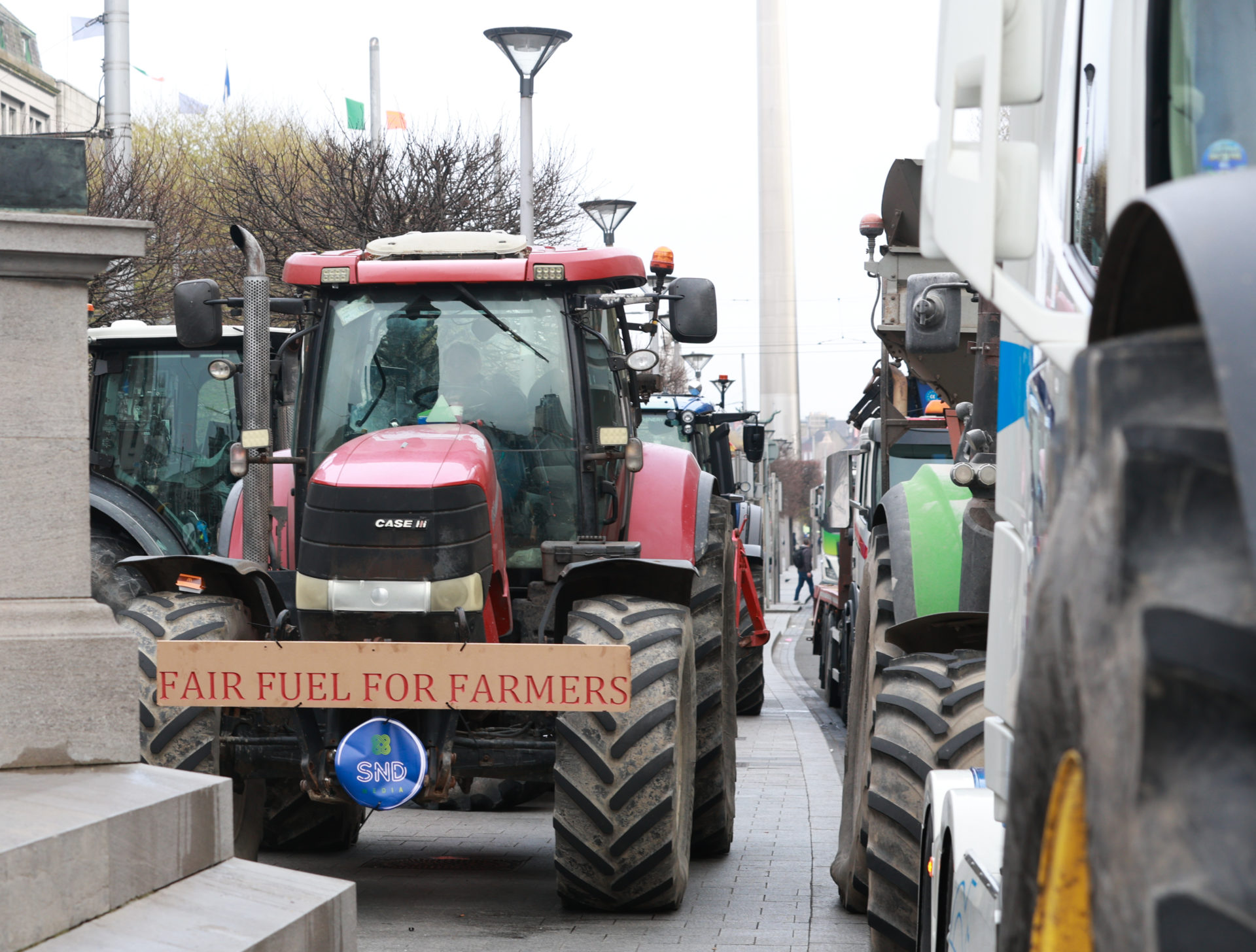 Major roads across the country have been bought to a standstill by the protestors and Dublin’s O’Connell Street has been blocked by tractors.