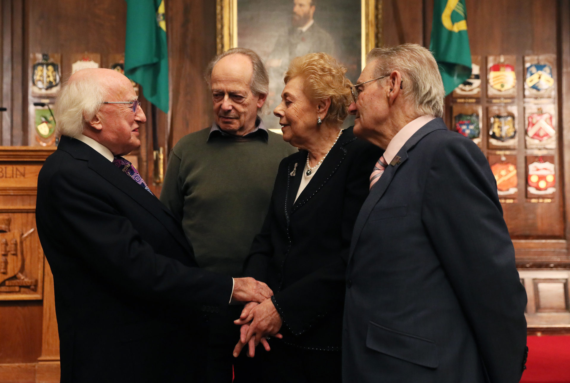 Michael D. Higgins meets with Holocaust survivors Walter Sekules, Suzi Diamond and Tomi Reichenthal at a National Holocaust Memorial Day Commemoration event in Dublin's Mansion House. Picture by: Alamy.com.Ciara especially took issue with those who believed the Holocaust to be a ‘myth’.