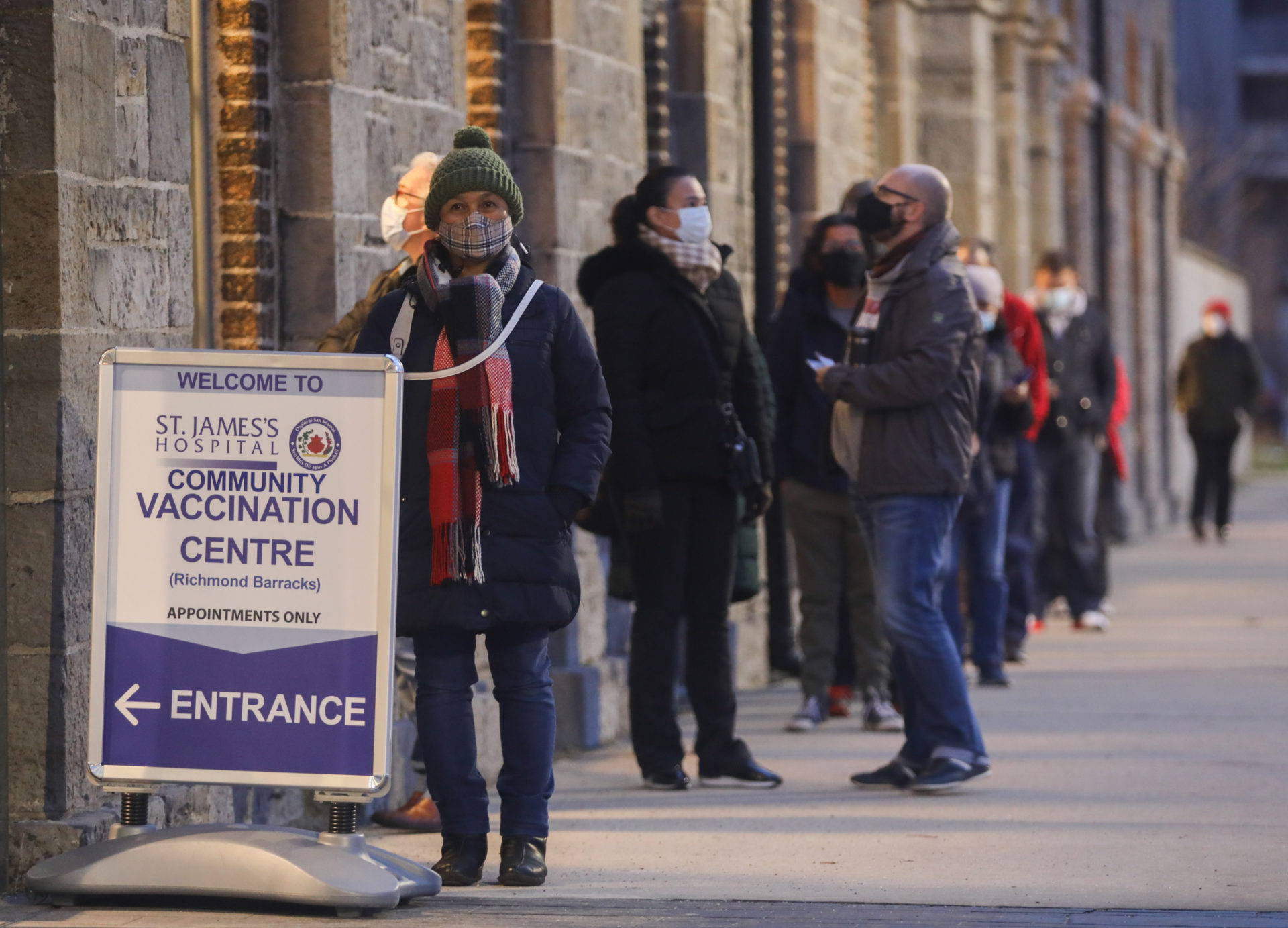 Members of the public queuing outside Richmond Barracks in Dublin for COVID vaccines. Picture by: Leah Farrell / RollingNews.ie.For anyone due to get a vaccine, Professor O’Neill suggested they indulge in some positive thinking beforehand.