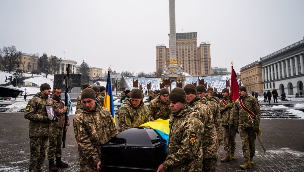 Ukrainian soldiers carry the coffin of Denys Galushko, a Ukrainian serviceman killed while fighting against Russian troops in Bakhmut. Picture by: Dimitar DILKOFF / AFP.One of the thorniest of issues is the question of security guarantees for NATO.