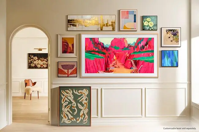 Enjoy a minimalist, clutter-free setup with a wireless One Connect box that keeps cables out of sight, letting the TV sit closely against your wall. Meanwhile, the customisable frame-style bezels, which are complementary with purchases, let you tailor its look to your décor, making it truly part of the room.